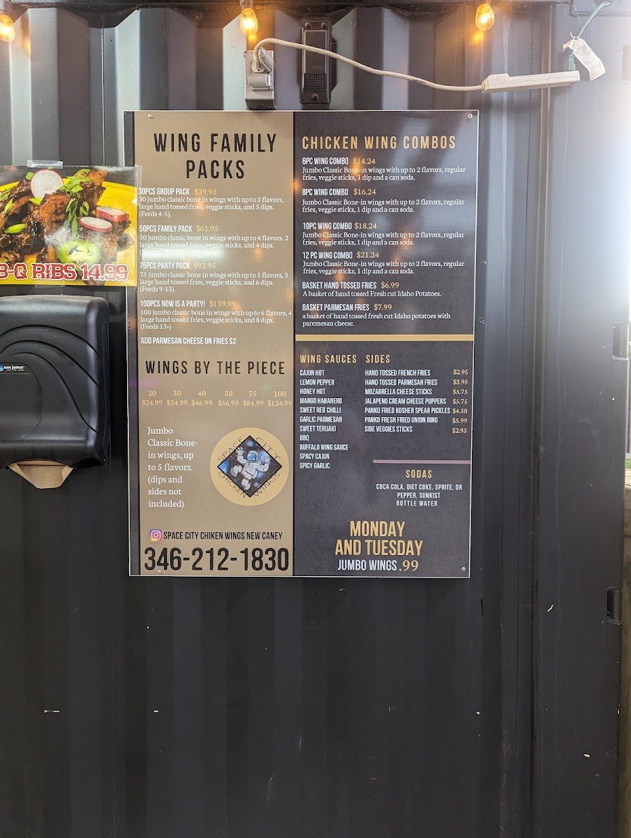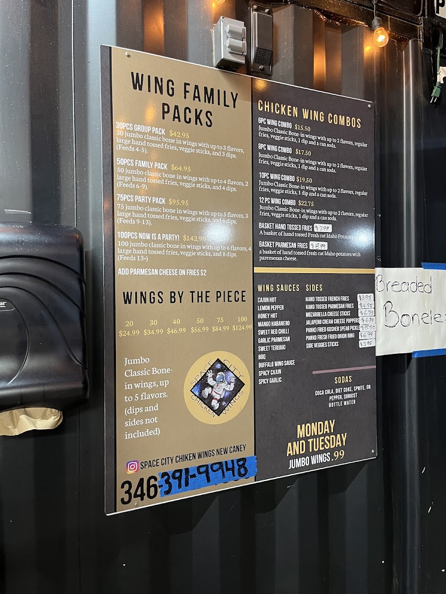 If you're craving some seriously delicious wings, Space City Chicken Wings Menu is where you'll want to be. Located at 23020 Speed St in New Caney, TX, this spot is all about bold flavors and a variety of tasty options. From crispy classic wings to spicy, saucy creations, there's something here for everyone. Whether you’re in the mood for mild or something with a little more kick, they’ve got you covered with different sauces and seasonings that pack a punch.